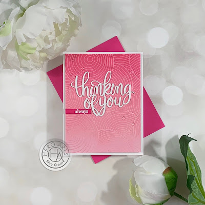 Today I am sharing couple cards using the Hero Arts Thinking Of You stamp and cut set (I LOVE the size and font of the sentiment both stamp and die cut and if you can tell I have been using it a lot) along with the Circle Pattern bold prints stamp.